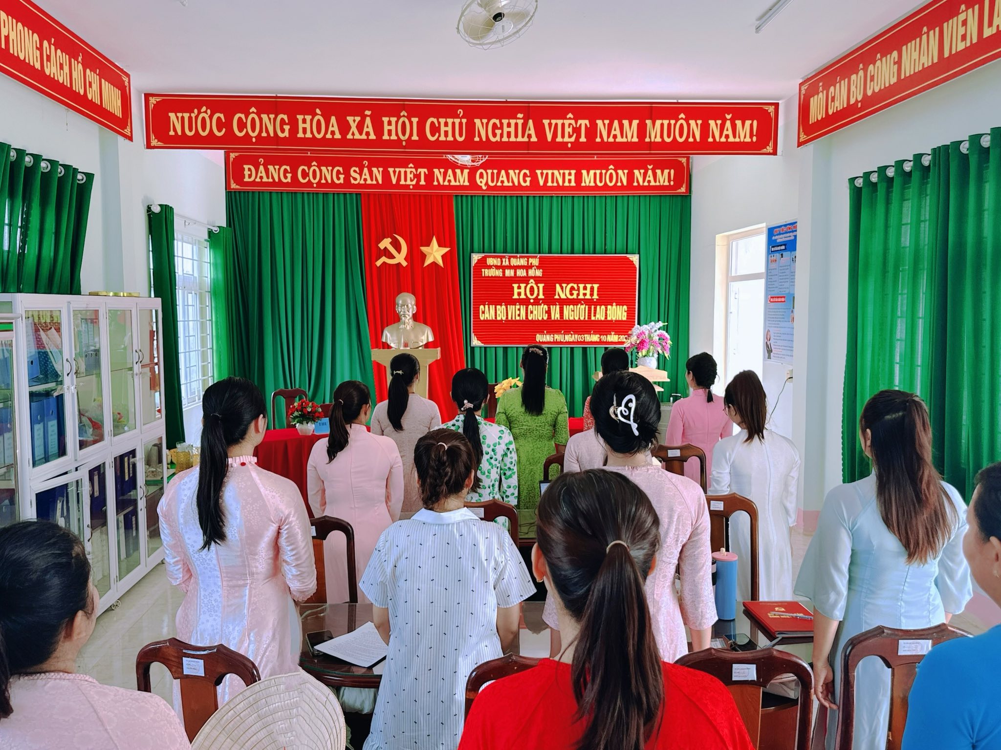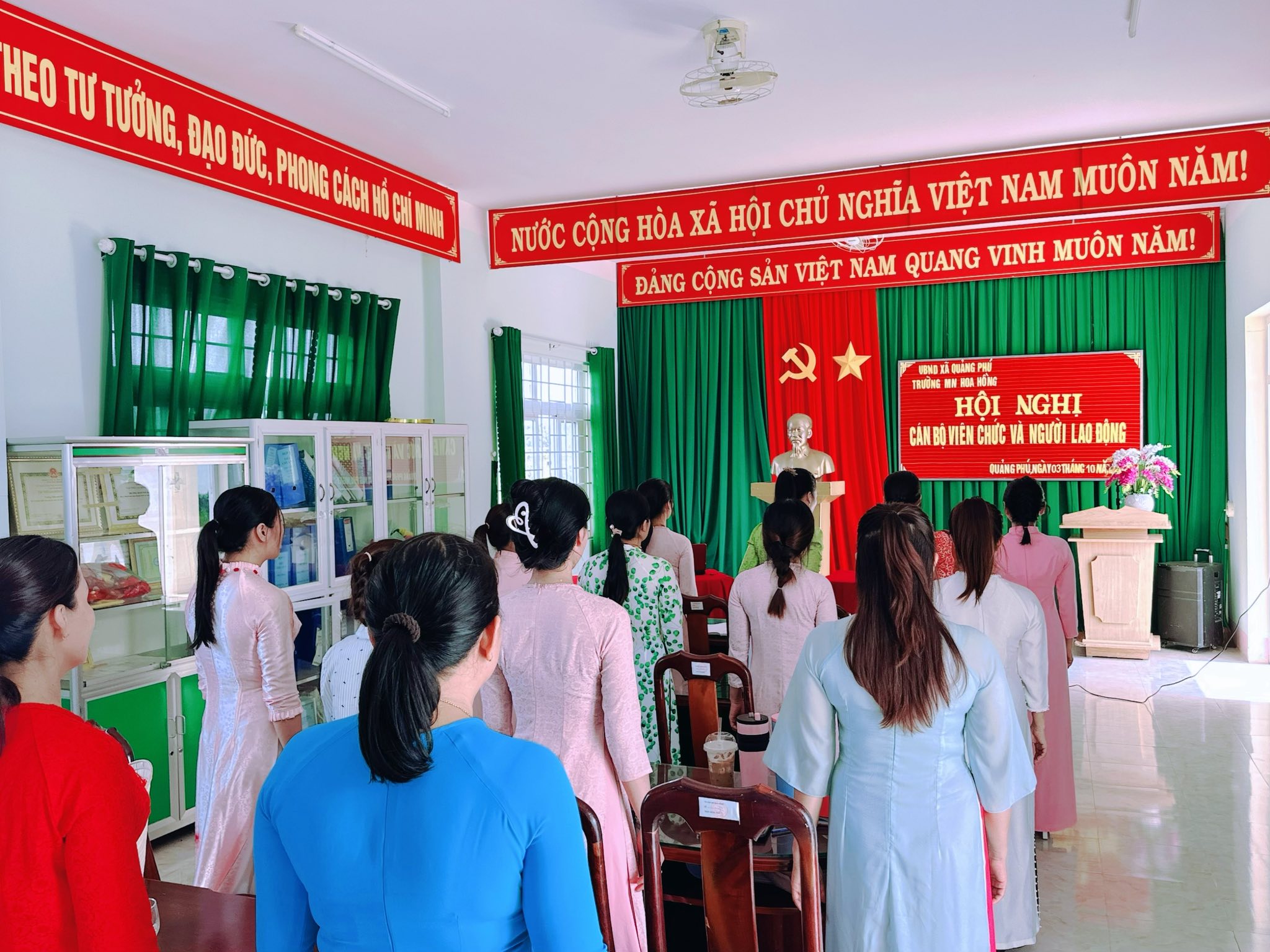 Thực hiện công văn số 794/SGDĐT-VP ngày 11/9/2025 của Sở Giáo dục và Đào tạo. Chiều ngày 03 tháng 10 năm 2025.Trường MN Hoa Hồng tổ chức Hội nghị Cán bộ, công chức,viên chức và người lao động năm học 2025- 2026.
