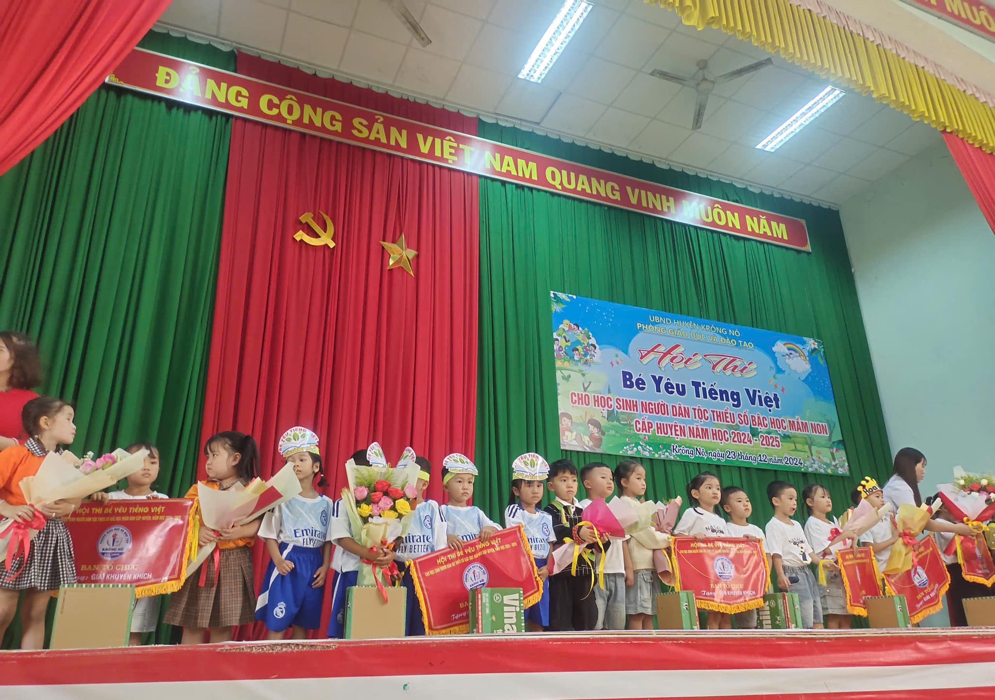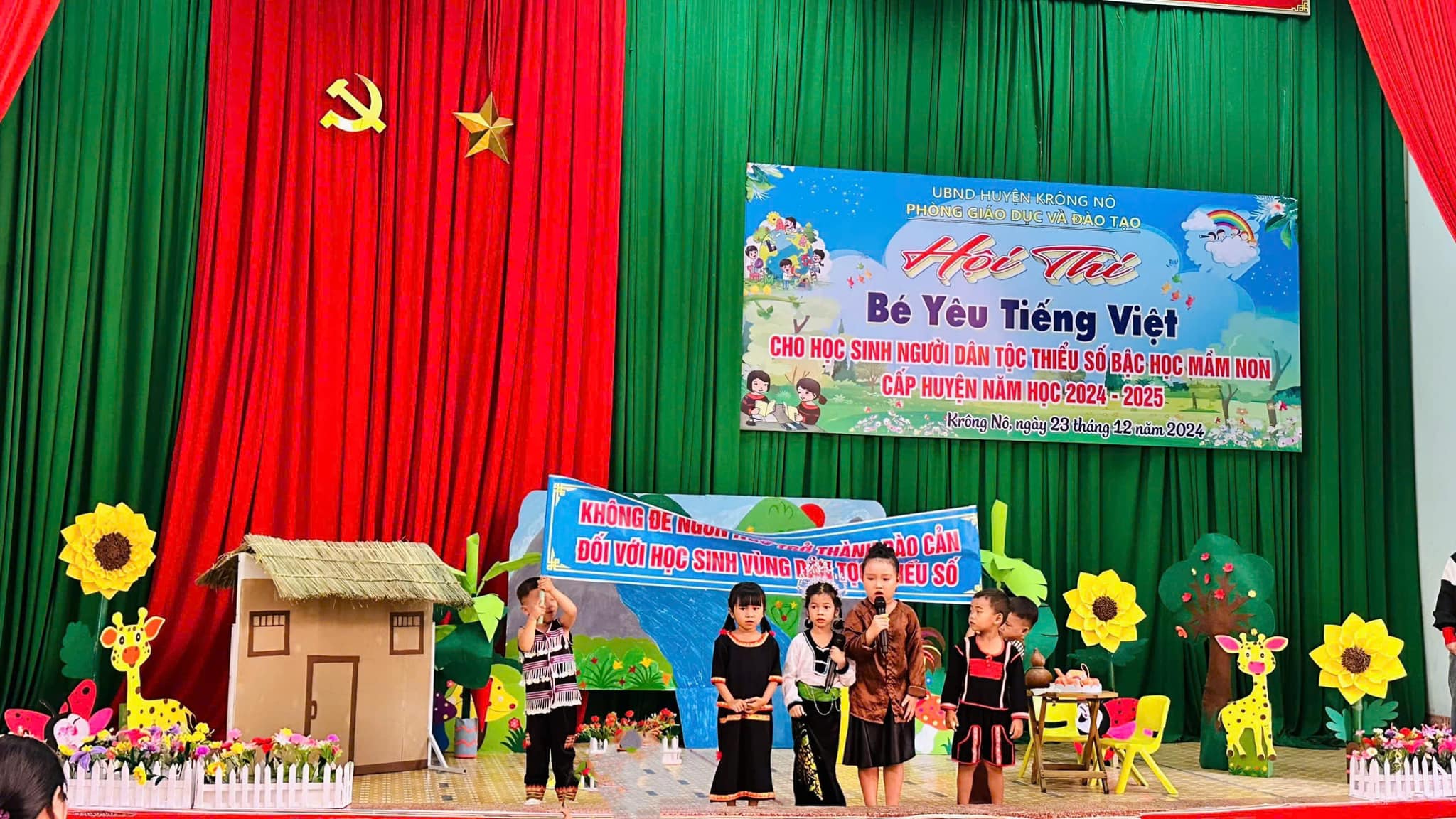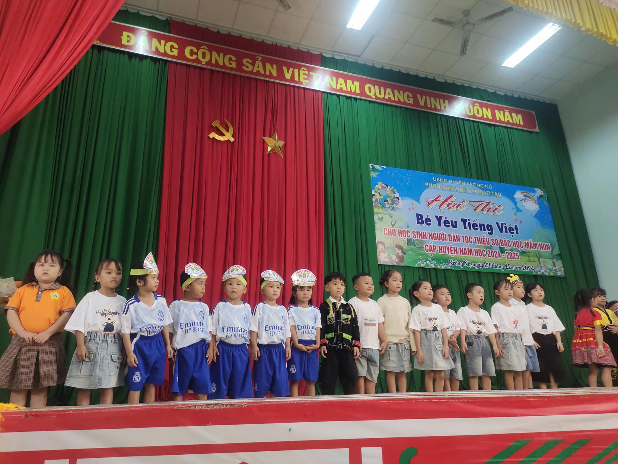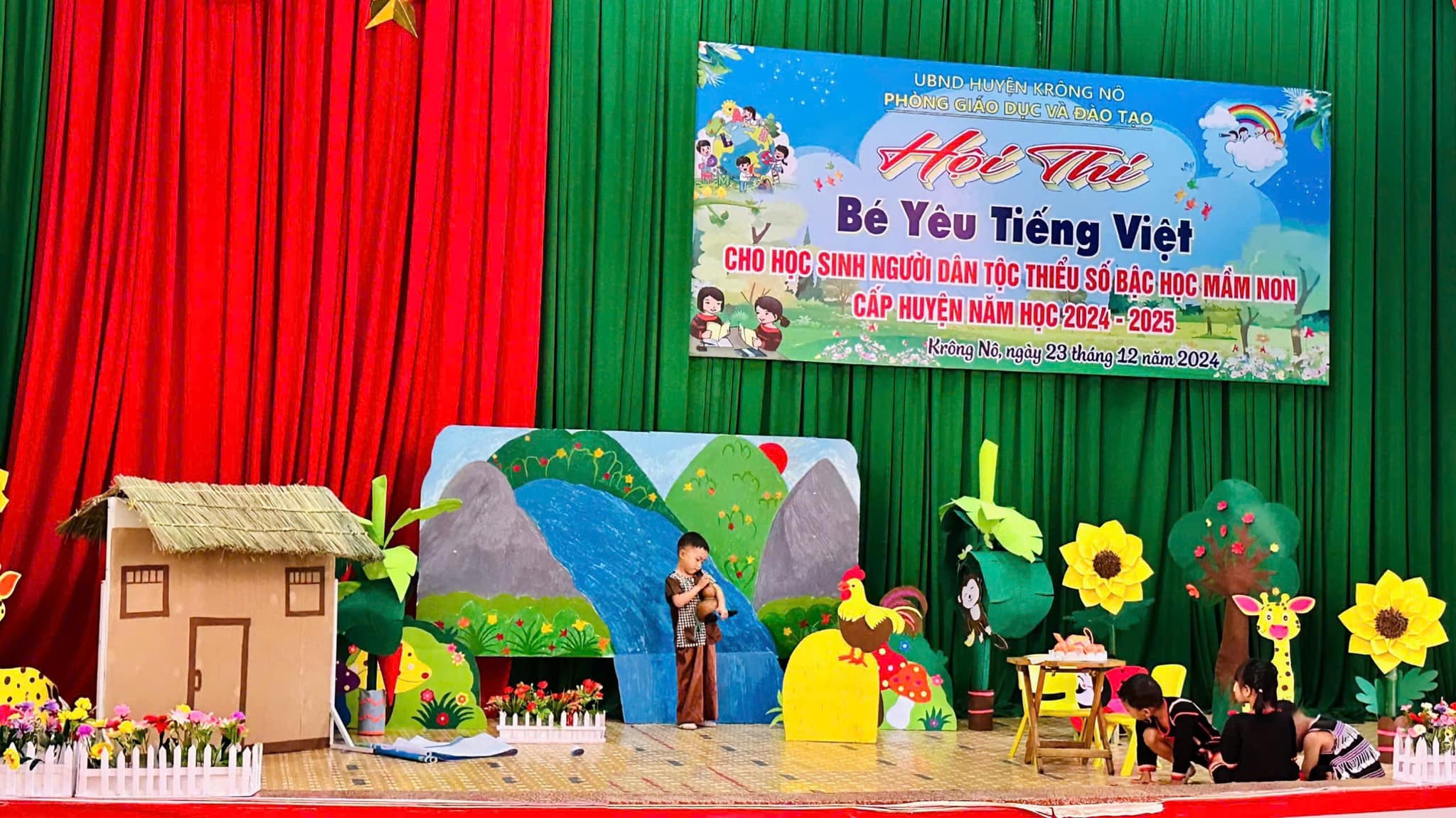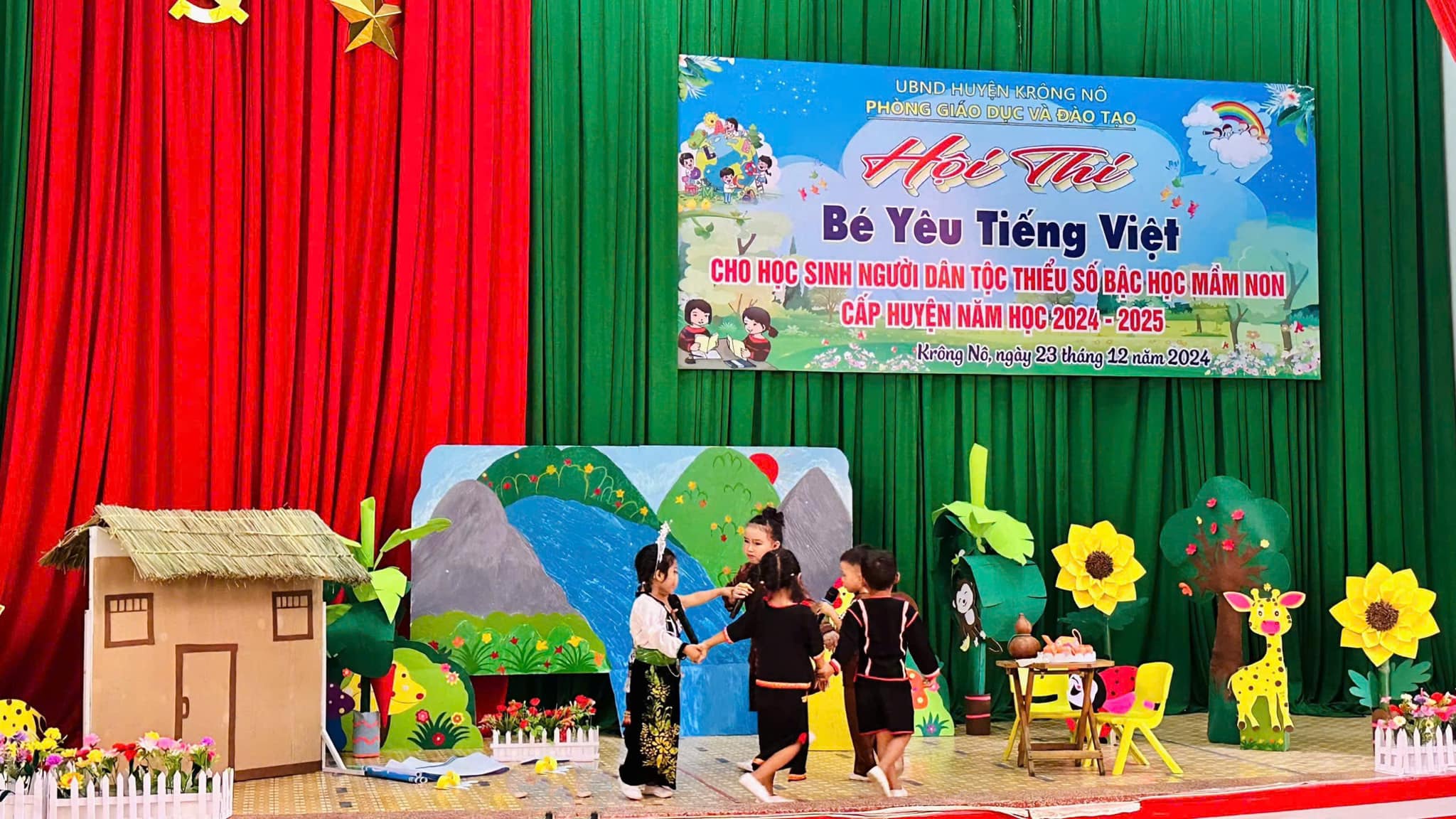 Sáng nay ngày 23/12/2024, Thực hiện Kế hoạch số 46/KH_ PGD và ĐT huyện Krông Nô. TRƯỜNG MẦM NON HOA HỒNG tham gia hội thi “ Bé yêu Tiếng Việt cho học sinh dân tộc thiểu số năm học 2024 – 2025″
